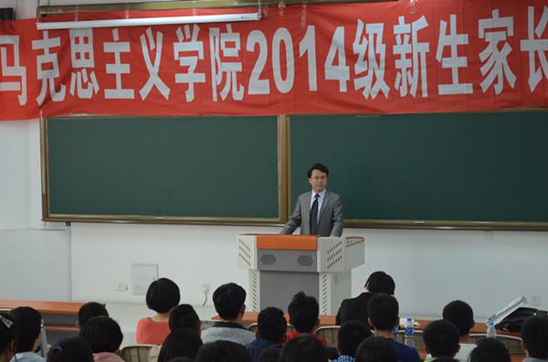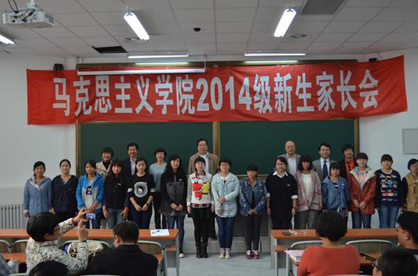 10月9日,马克思主义二八杠 2014级新生家长会在文科一号楼A447召开。二八杠 领导和各专业相关教师同百余位新生、家长一起参加了此次家长会。会上,田鹏颖介绍了新生适应性问题,张满胜就学生管理工作作了相关阐述。二八杠 教师为学生佩戴了校徽。