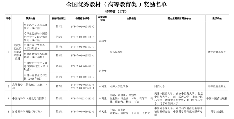 全国教材建设奖评选由国家教材委员会主办、教育部承办,面向大中小学教材建设的各领域各环节,每四年评选一次。这是我国教材工作领域的最高奖项,也是新中国成立以来国家首次设立的专门教材奖励项目,旨在检阅、展示教材建设服务党和国家人才培养成果,对优秀教材和对教材建设作出突出贡献的集体、个人予以表彰,以进一步增强教材工作者荣誉感、责任感,打造更多培根铸魂、启智增慧、适应时代要求的精品教材。