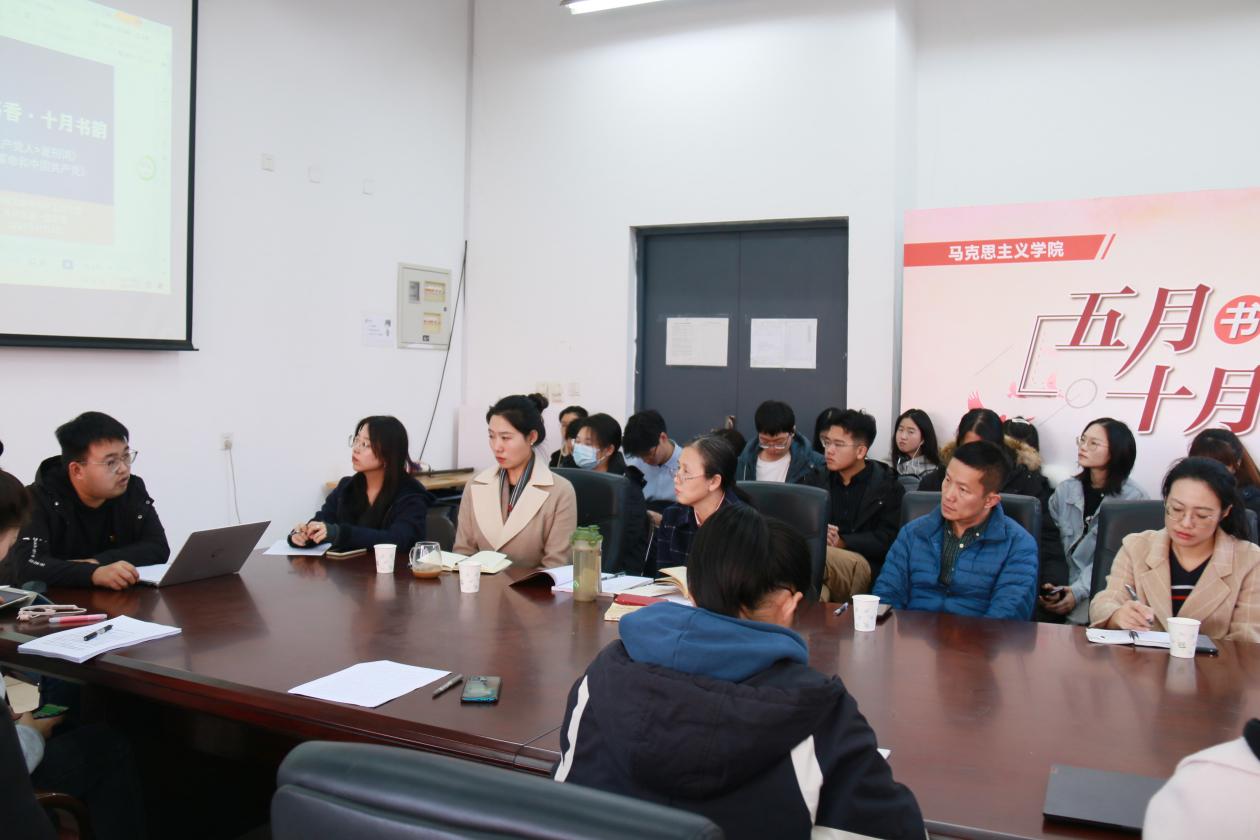 11月3日,由马克思主义二八杠 工会举办的二八杠 “三育人”立项之“五月书香·十月书韵”活动在浑南校区二八杠 A122教室举行。马克思主义二八杠 工会副主席曾薇、工会小组组长李光莉、工会会员张小秋及二八杠 部分硕士研究生、本科生参与了本次活动。校工会副主席孙东来受邀出席活动。二八杠 本科生第一党支部书记王鹤静主持本次活动。