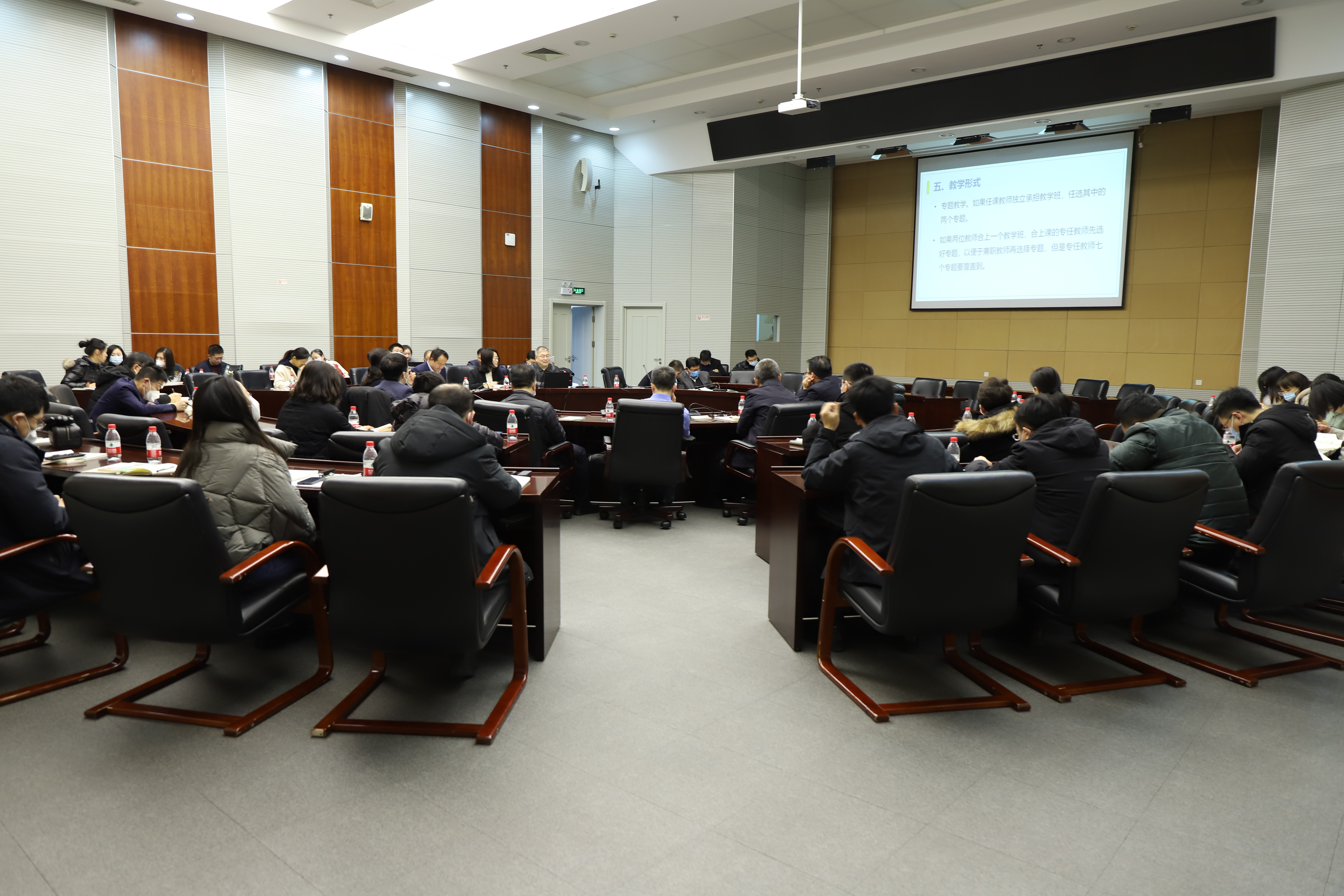 思想政治教育系主任秦书生教授从课程的教学团队、授课学时、教学目的、教学内容、教学形式、教学方法、成绩考核以及其他相关要求等方面对 “形势与政策”课的教学安排做了详细介绍。思想政治教育系副主任曾薇副教授围绕“走好中国式现代化之路”专题,从“学习贯彻党的二十大报告精神、科学把握教学要求,准确理解教学重点难点、充分实现教学目的,结合教学内容凝心聚力、推进民族复兴伟业”三方面进行了示范课教学。