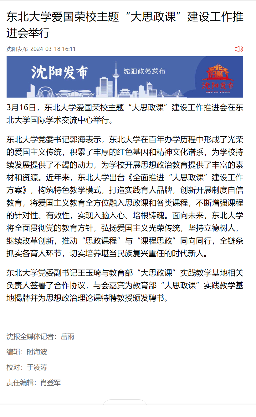 新闻来源:“沈阳发布”微信公众号,2024年3月18日