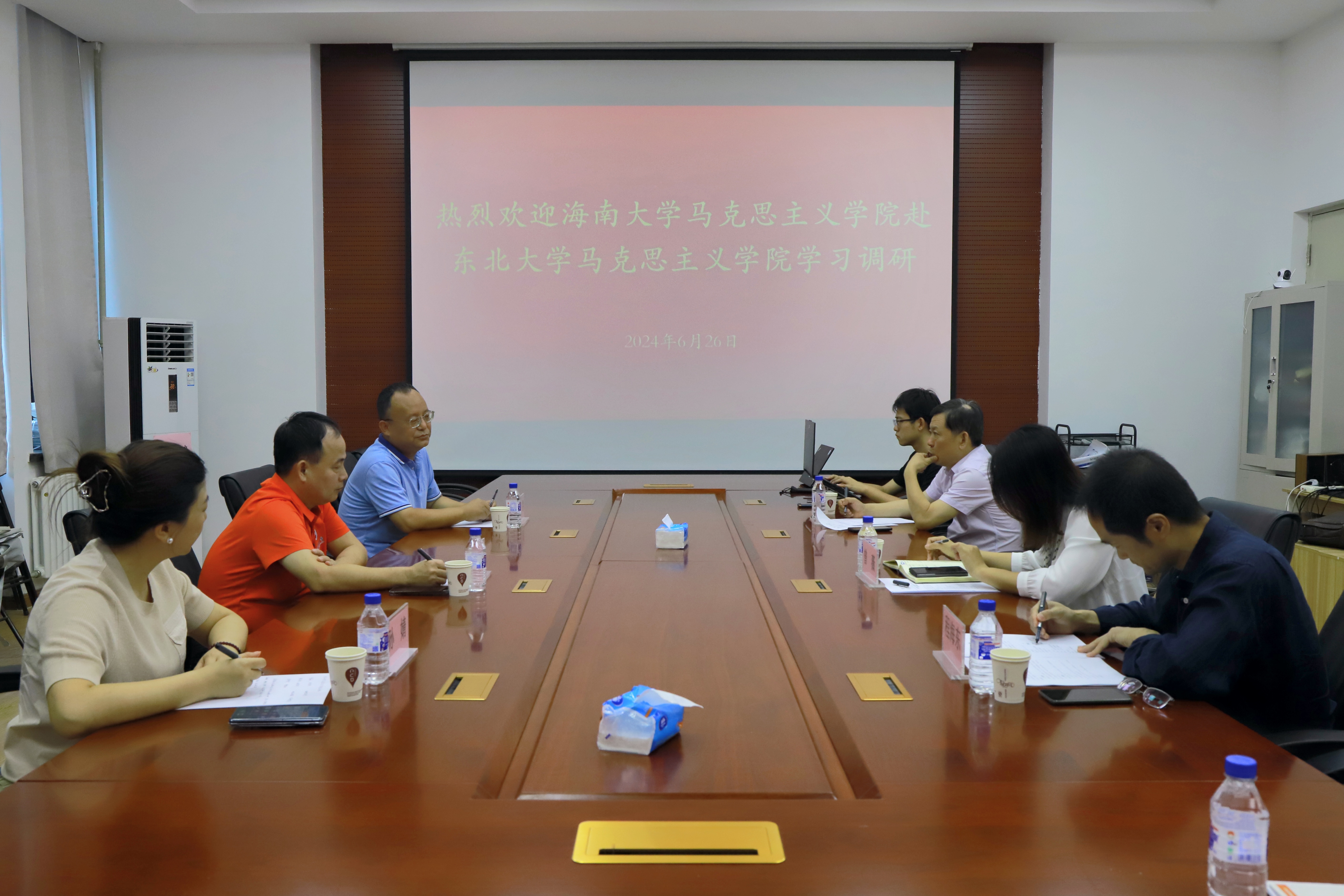 6月26日,海南大学马克思主义二八杠 党委书记王大群一行来二八杠 调研交流。马克思主义二八杠 副院长曾薇、程海东,综合办公室主任高青及教师代表参加调研会交流。曾薇主持会议。