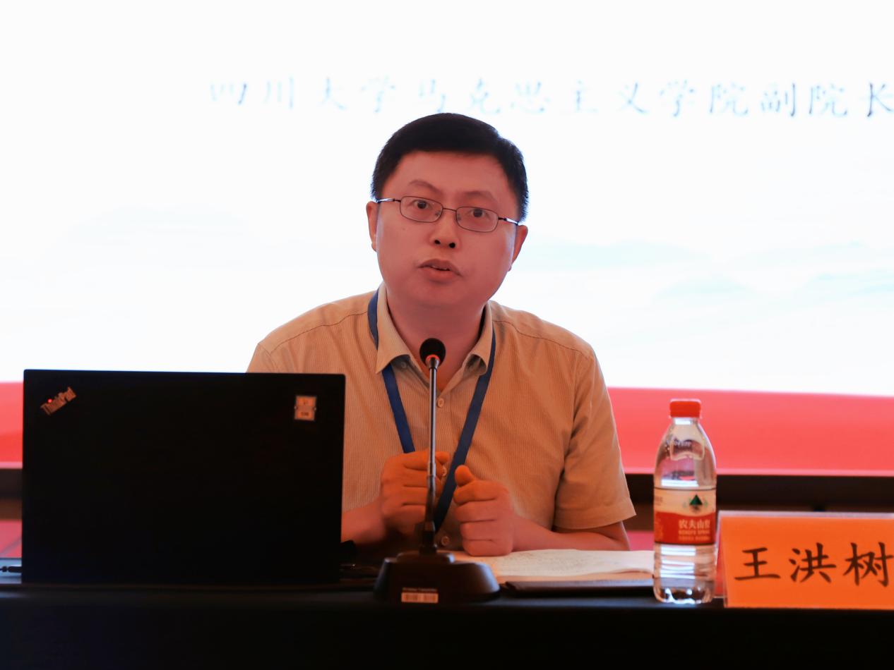 四川大学马克思主义二八杠 副院长王洪树教授作题为《共产党阶级性的多维解读与时代启示》的主题发言。他立足中国式现代化的本质要求,从物质生产、政治生活、精神领域、人与自然关系以及全人类解放等维度解读共产党阶级性。他指出,深刻阐释共产党阶级性既有利于深化对中共党史党建学基础命题的认知,又能为新时代中国发展提供理论解释力和引导力。