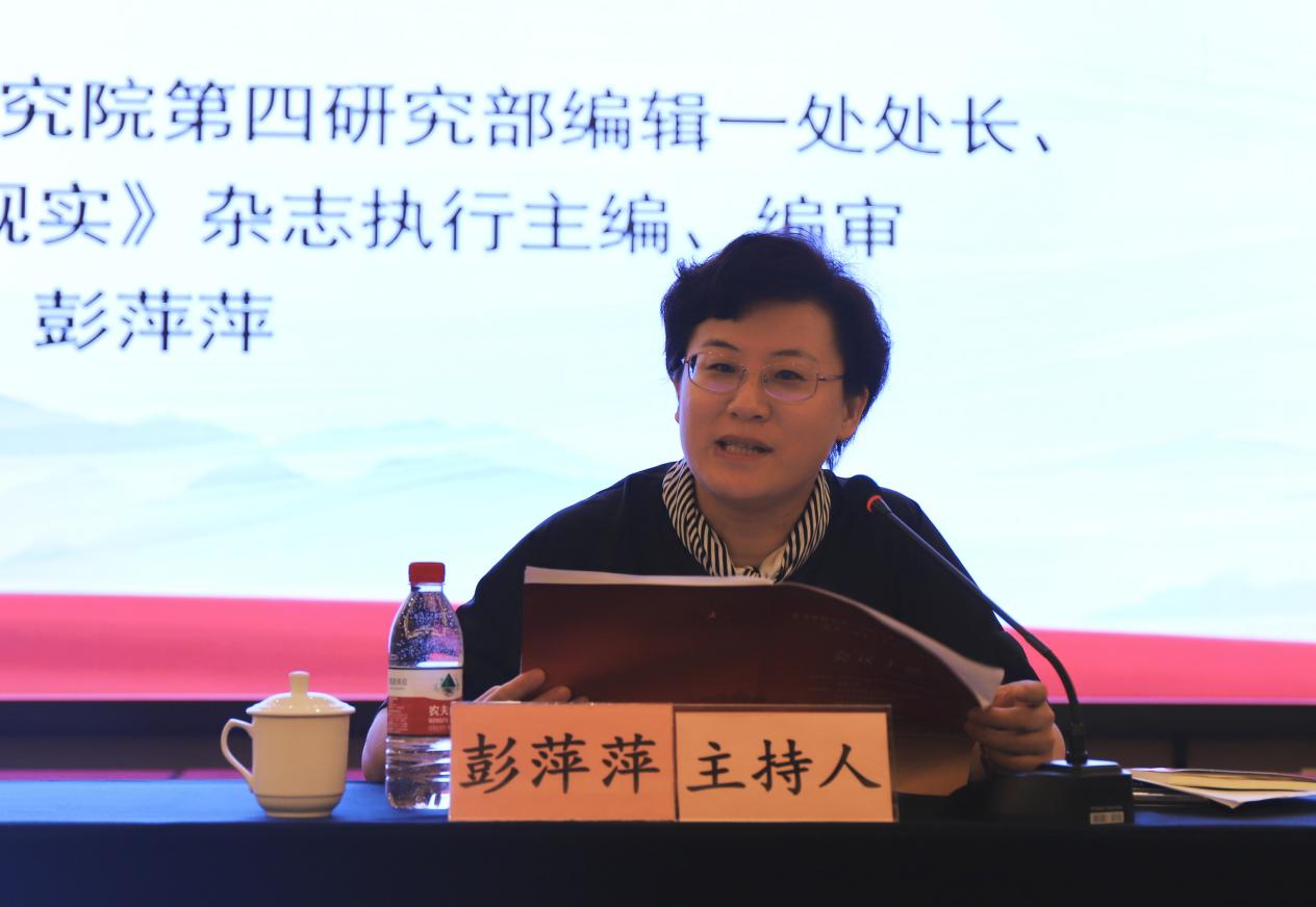 中共中央党史和文献研究院第四研究部编辑一处处长、《马克思主义与现实》杂志执行主编彭萍萍编审主持主题发言环节。