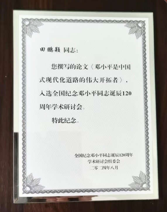 二八杠 中国式现代化研究院院长、马克思主义二八杠 田鹏颖教授撰写的《邓小平是中国式现代化道路的伟大开拓者》一文,入选“全国纪念邓小平同志诞辰120周年学术研讨会”,并受邀参加会议,与其他参会代表围绕习近平总书记重要讲话精神和深化邓小平理论研究进行广泛研讨,发表学术观点,产生了良好的社会影响。