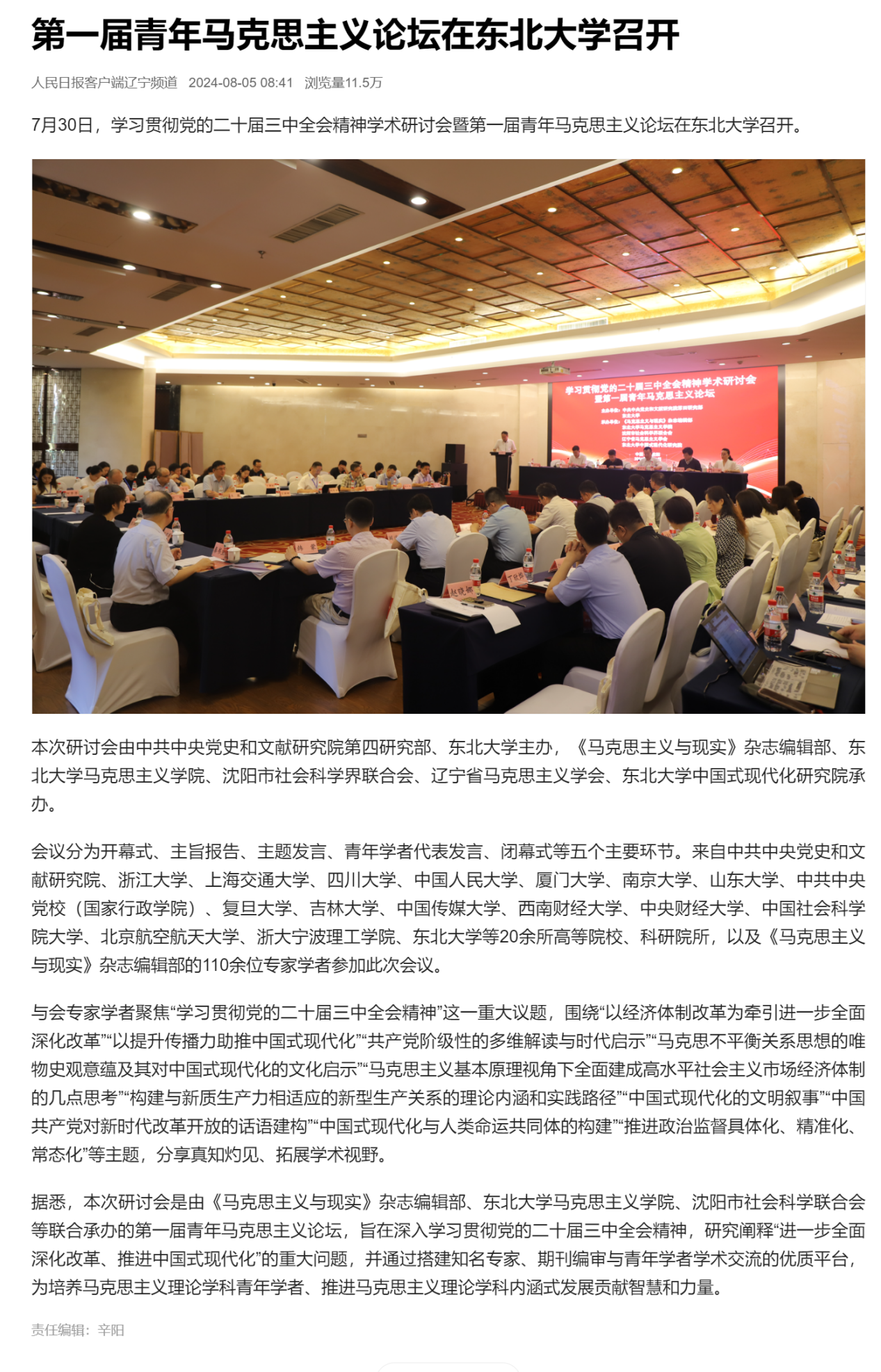 据悉,本次研讨会是由《马克思主义与现实》杂志编辑部、二八杠 、沈阳市社会科学联合会等联合承办的第一届青年马克思主义论坛,旨在深入学习贯彻党的二十届三中全会精神,研究阐释“进一步全面深化改革、推进中国式现代化”的重大问题,并通过搭建知名专家、期刊编审与青年学者学术交流的优质平台,为培养马克思主义理论学科青年学者、推进马克思主义理论学科内涵式发展贡献智慧和力量。