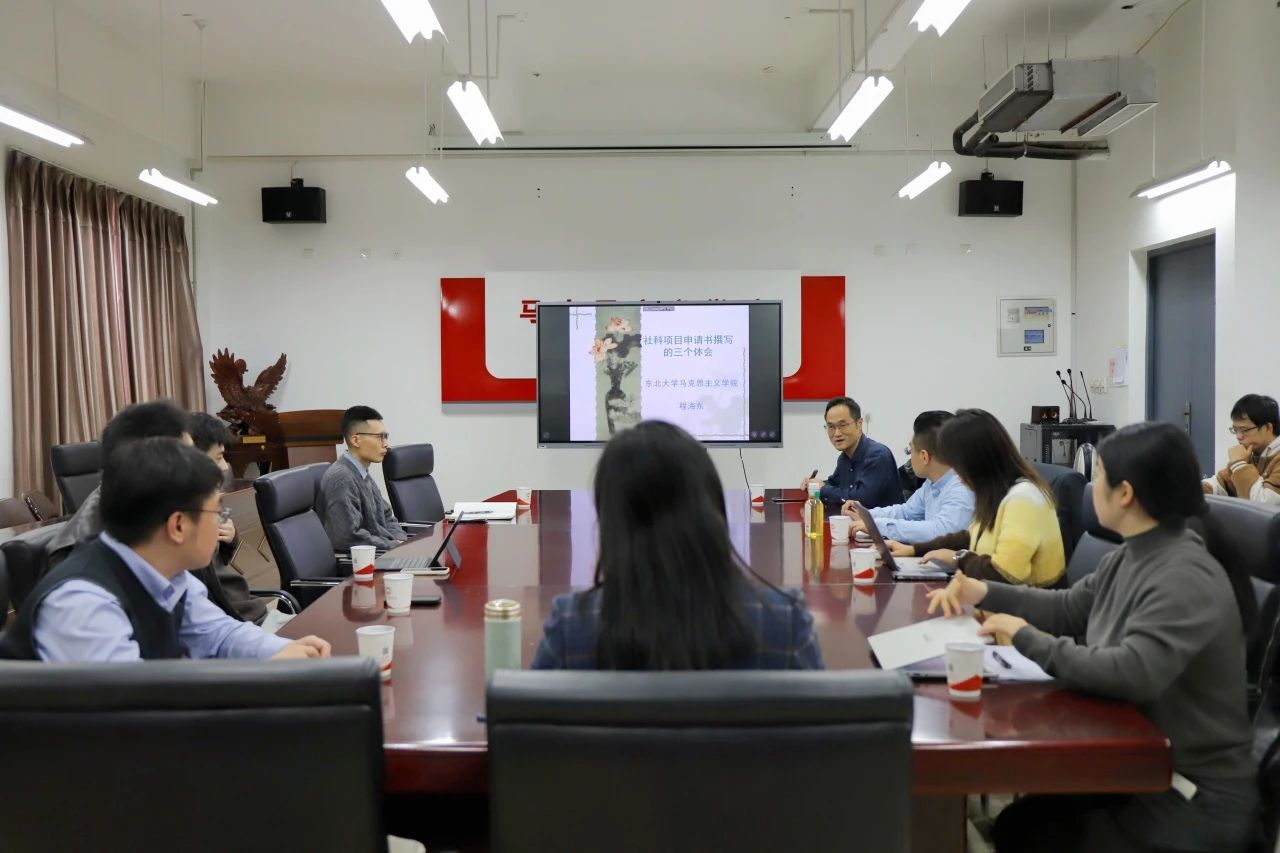 11月19日,马克思主义二八杠 举办第一期青年教师教研沙龙。本次沙龙邀请马克思主义二八杠 副院长程海东副教授作题为《社科项目申请书撰写的三个体会》的学术分享。二八杠 党委副书记、纪委书记董蕾及青年教师参加本次沙龙活动。青年教师陈洁彤主持沙龙活动。