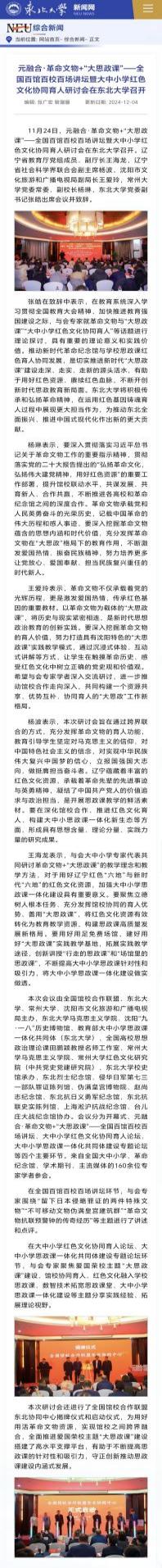 本次研讨会还进行了全国馆校合作联盟东北协同中心揭牌仪式和启动仪式,为用好用活革命文物资源,实现馆校之间跨界融合,全面推进爱国荣校主题“大思政课”建设搭建了高水平支撑平台,有助于不断提高思政课的针对性和吸引力,守正创新推动思政课建设内涵式发展。
