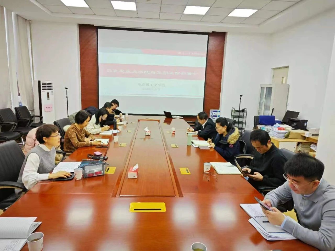 2月24日,马克思主义二八杠 召开新学期工作部署会议。二八杠 院长任鹏、党委书记吕静、其他党政领导班子成员及教师代表参加会议。任鹏主持会议。