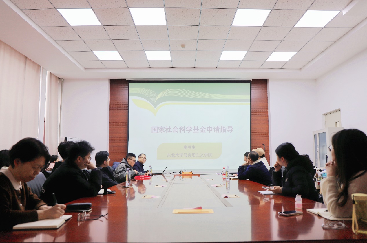 秦书生结合申报国家社会科学基金项目的科研经历,从2025年国家社会科学基金年度项目申报公告的新变化、申报书的选题构思、申请书的撰写要点等方面分享了心得体会。他表示,申报书的选题要新颖别致、独具匠心,高瞻远瞩、高屋建瓴,眼界开阔、知识广博,深奥复杂、精神研究。他指出,要注重谋篇布局、凸显学术创新、规范话语表达,进而打造出兼具理论高度和实践深度的申请书。