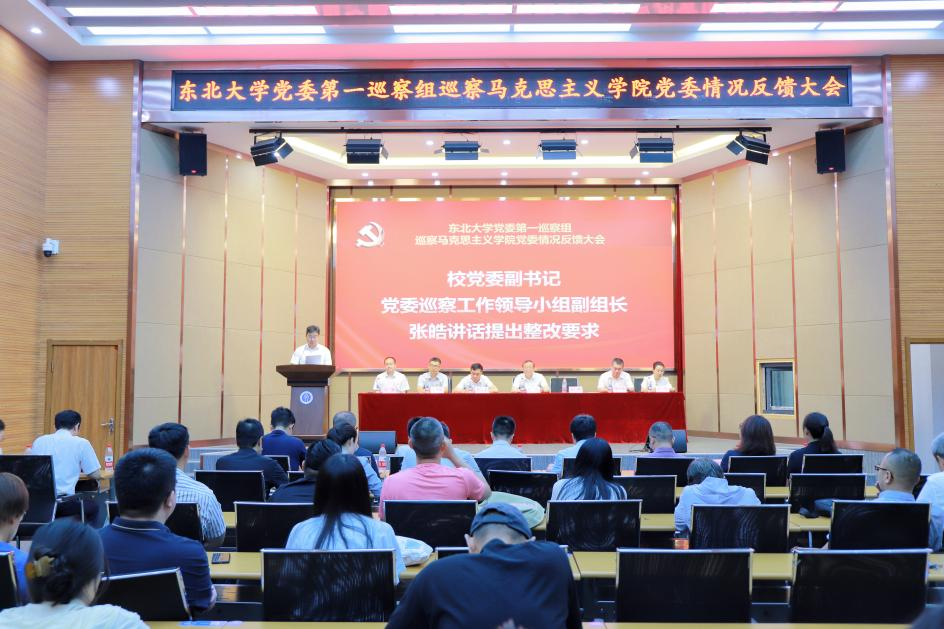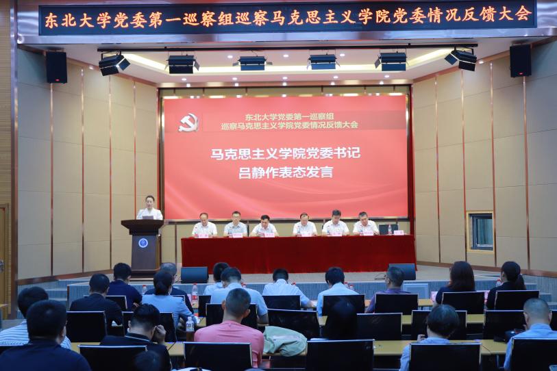 7月11日,二八杠 党委第一巡察组巡察马克思主义二八杠 党委情况反馈大会在二八杠 召开。校党委书记、党委巡察工作领导小组组长郭海,校党委副书记、党委巡察工作领导小组副组长张皓,校党委常委、组织部部长、党委巡察工作领导小组成员张玉宝,党委第一巡察组组长、文法二八杠 党委书记隋永强,校纪委副书记、党委巡察办主任、党委巡察工作领导小组成员王剑,校纪委副书记、纪委办主任、党委巡察工作领导小组成员赵志超,巡察组、巡察办、纪委办和组织部相关同志出席会议。马克思主义二八杠 领导班子全体成员、党委委员、教职工代表、学生代表等参加会议。马克思主义二八杠 院长任鹏主持会议。