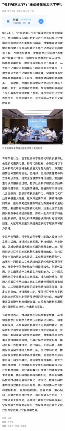 专家学者认为,哲学社会科学是推动时代发展和社会进步的重要力量。新时代新征程,必须坚持以习近平新时代中国特色社会主义思想为指导,深刻把握其世界观和方法论,坚持好、运用好贯穿其中的立场观点方法,将其全面贯穿于理论创新、实践探索与决策服务全过程。哲学社会科学研究必须始终坚持问题导向,立足国情省情,围绕新时代推动东北全面振兴、加快形成新质生产力、构建现代化产业体系等重大课题,组织开展跨学科、跨领域的协同攻关,推动研究成果有效转化为政策举措和发展实效。要创新社科成果转化机制,注重从辽宁全面振兴实践中总结提炼经验,形成一批具有辽宁特色的社科品牌,提升社科成果服务决策的针对性和实效性,为区域高质量发展提供坚实的学理支撑和智力支持。